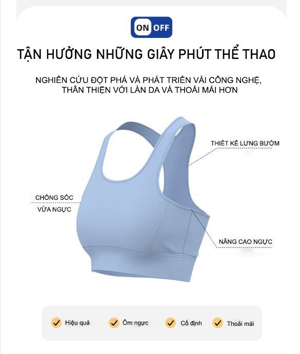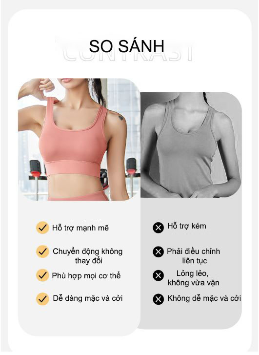 Áo bra thể thao có chất liệu thun cao cấp, co giãn và thấm mồ hôi cực tốt đem đến sự thoải mái, tụ tin cho người mặc.